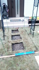 - 【レンガ敷き】で大切なのが“掘る”こと。我が家では庭と玄関がつながっているため、...