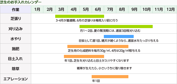 ちょっと番外編ですが、芝生の手入れも大切!綺麗な芝生を維持するためには、ここもしっかり手をかけてあげましょう♪ |